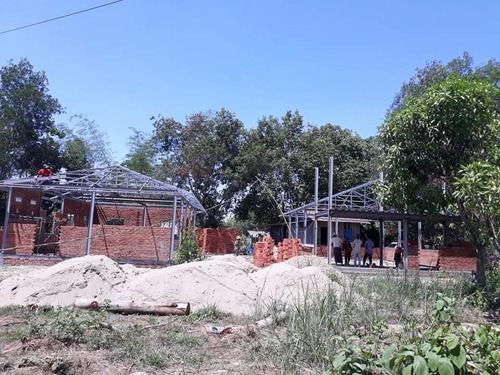 The progress is great! Today's building position. There will be two separate buildings: one for a boys' dorm and one for a girls' dorm. In between, there will be a dinning hall and kitchen. There is another separate small building for the care takers [warden].